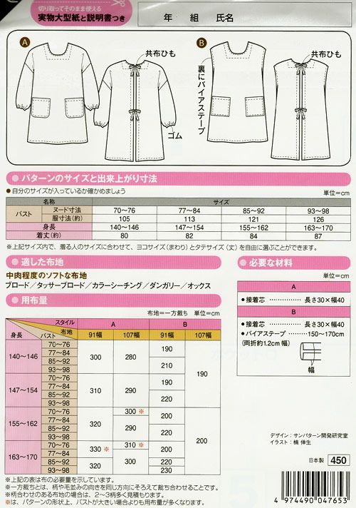 生産終了/在庫限り 実物大型紙・親子のレイヤードスモック