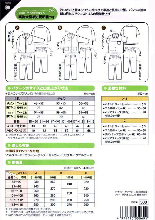 在庫限り/実物大型紙・幼男女児 パジャマ(身長88~116cm)