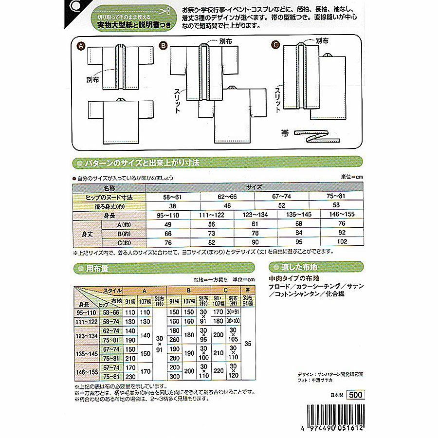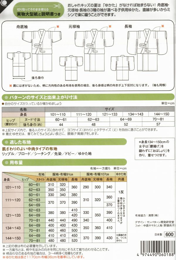 在庫限り:実物大型紙・ゆかたドレス(セパレートタイプ/こども女子)