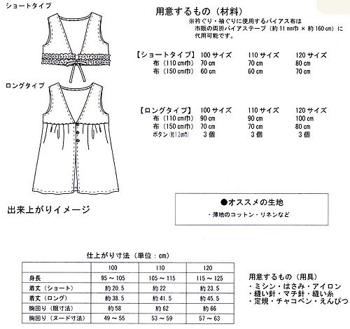 ●子供ベスト:ロングタイプとショートタイプが作れるベスト。ちょっとした着こなしで、ぐんとおしゃれさんになれる魅力的なアイテムです。