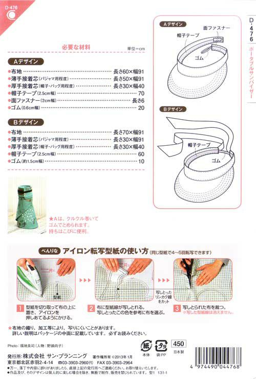 実物大型紙・ポータブルサンバイザー(アイロン転写型紙)
