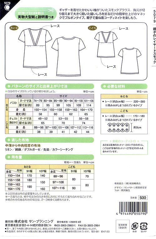 親子でお揃いに♪ 実物大型紙・親子のレイヤードスモック