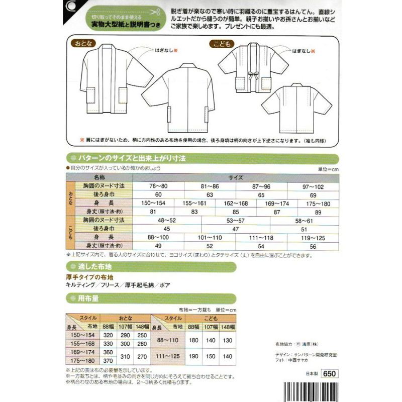 商品案内脱ぎ着が楽なので寒いときに羽織るのに重宝するはんてんのパターン。