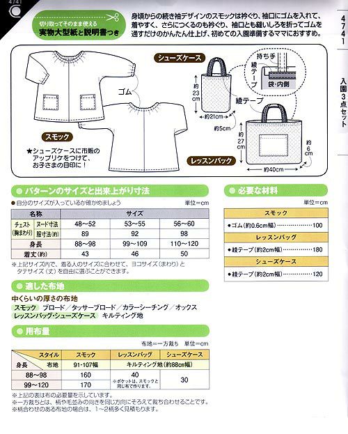 レッスンバッグ・シューズ入れ・お弁当入れのパターンつき!