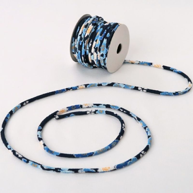 ちりめん丸ひも・柄・2ミリ(実寸約3ミリ)春爛漫・紺