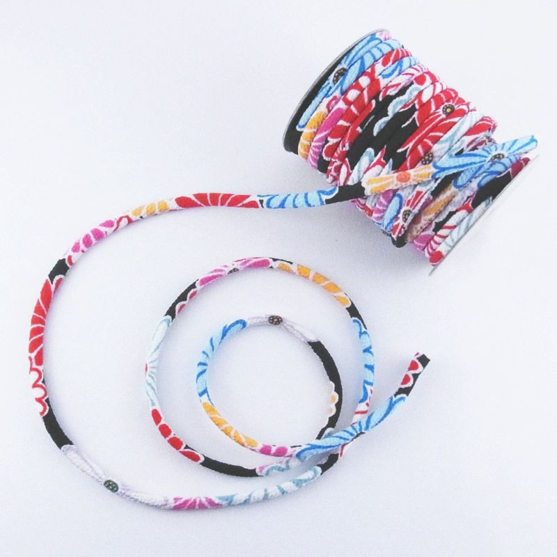 落ち着きのある上品なちりめん紐 ちりめん丸ひも・柄・3ミリ(実寸約4ミリ) 典雅・黒 10cm単位 切り売り