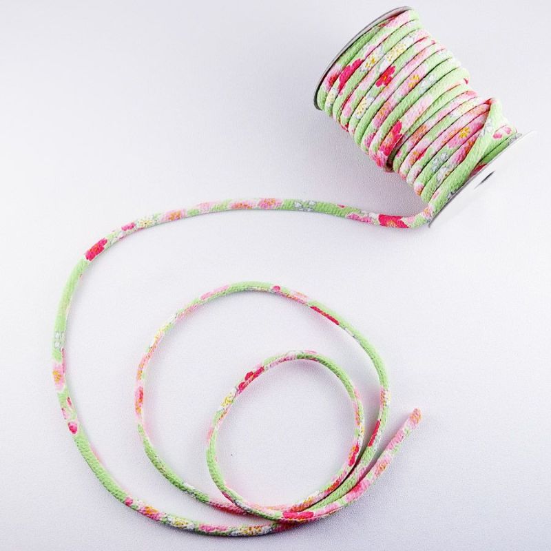 ちりめん丸ひも・柄・3ミリ(実寸約4ミリ) 春爛漫・黄緑