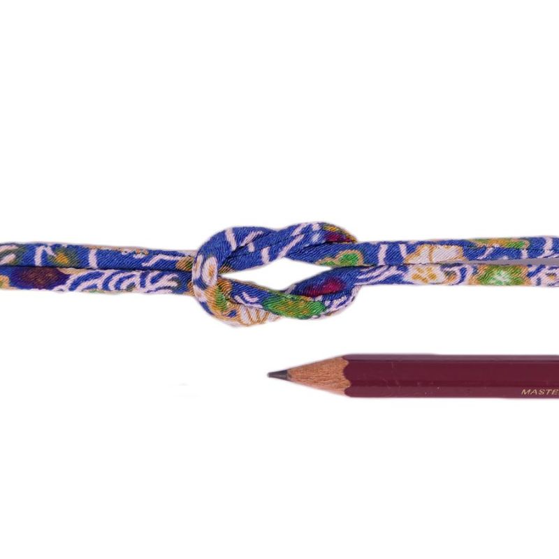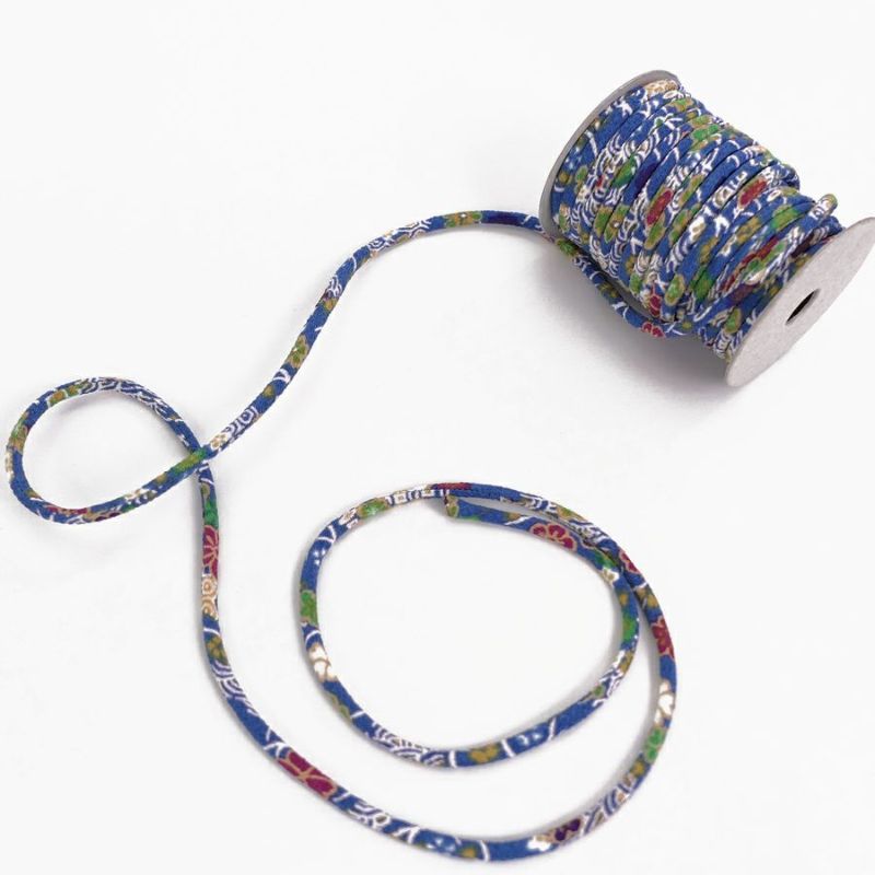青がキレイ! ちりめん丸ひも・柄・3ミリ(実寸約4ミリ) 彩り椿・ブルー 10cm単位 切り売り