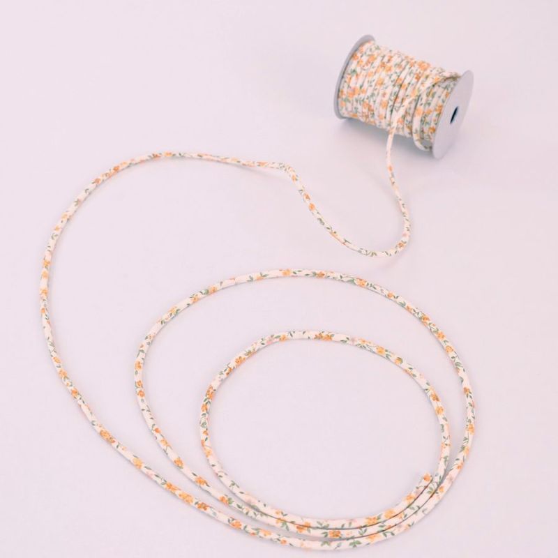 小物作りに便利☆コットンコード! 木綿丸ひも(2m巻)柄・2ミリ 小花柄(薄ベージュ/紫)