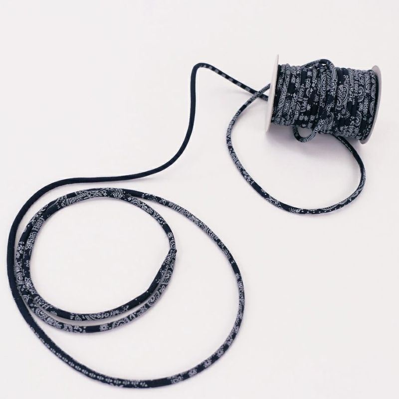 おしゃれで洗練されたデザインの木綿ひも 木綿の丸ひも・洋風柄・3ミリ(実寸約3-4ミリ) ペイズリー・ネイビー 10cm単位 切り売り