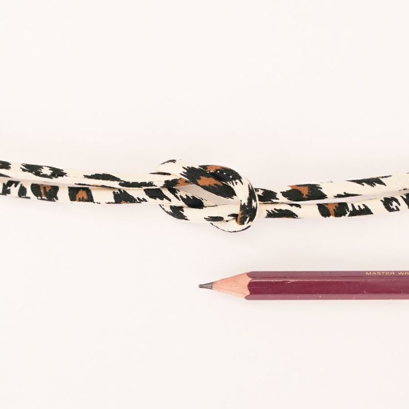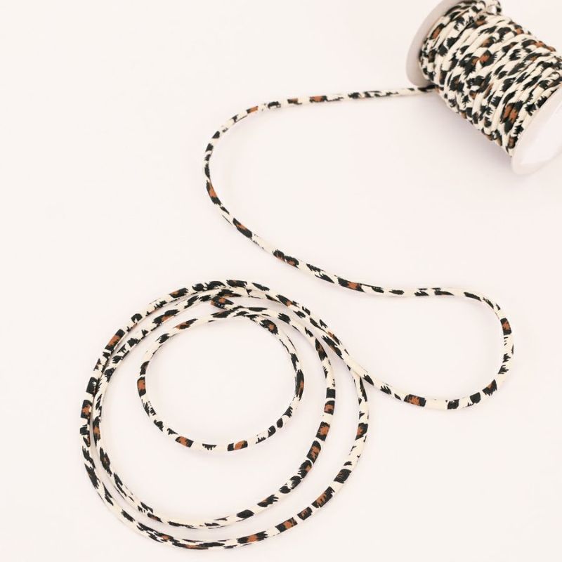 大人っぽいヒョウ柄の木綿ひも 木綿の丸ひも・洋風柄・3ミリ(実寸約3-4ミリ) レオパード 10cm単位 切り売り