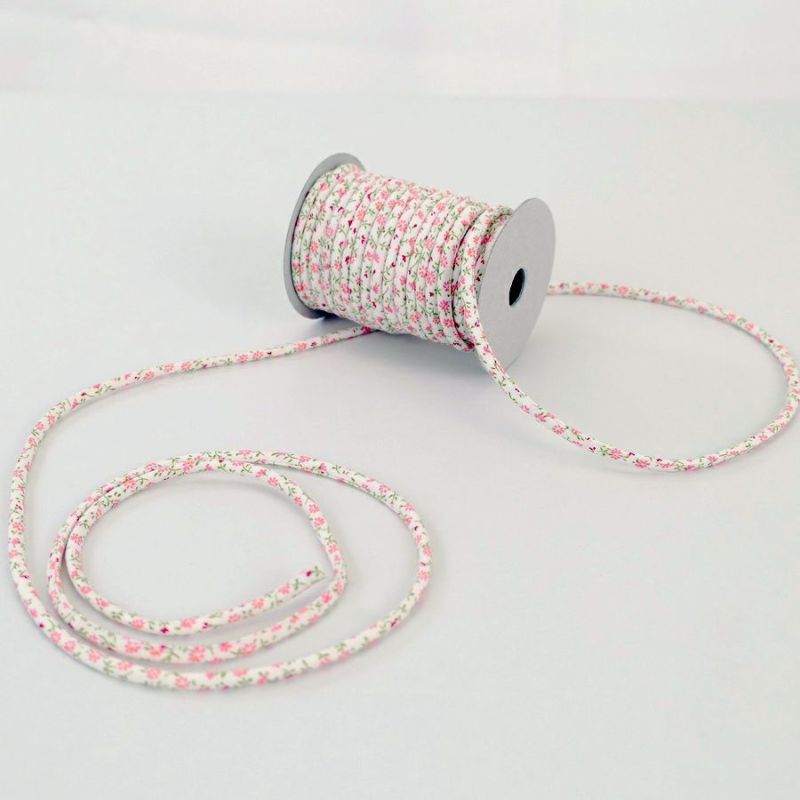 小物作りに便利☆コットンコード! 木綿丸ひも(2m巻)柄・2ミリ 小花柄(ピンク)