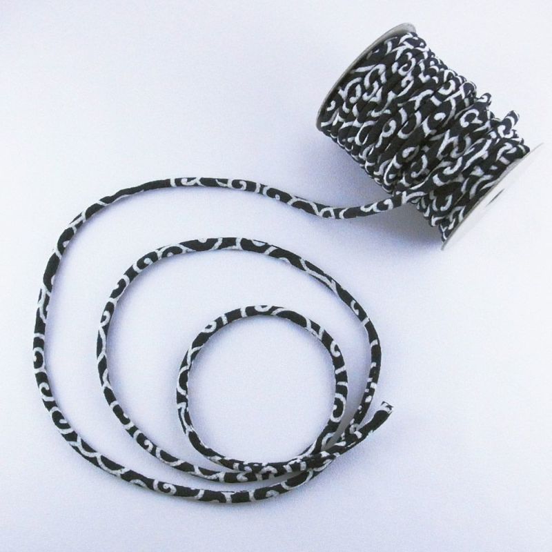 定番柄がモダンな縮緬ひも ちりめん丸ひも・小紋調柄・3ミリ(実寸約4ミリ) 唐草・紺 10cm単位 切り売り