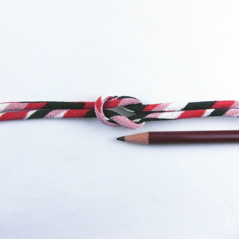 商品案内 黒・赤・白・ピンクが交互に現れるオシャレな丸ひも。そのまま髪に結んでも素敵です。