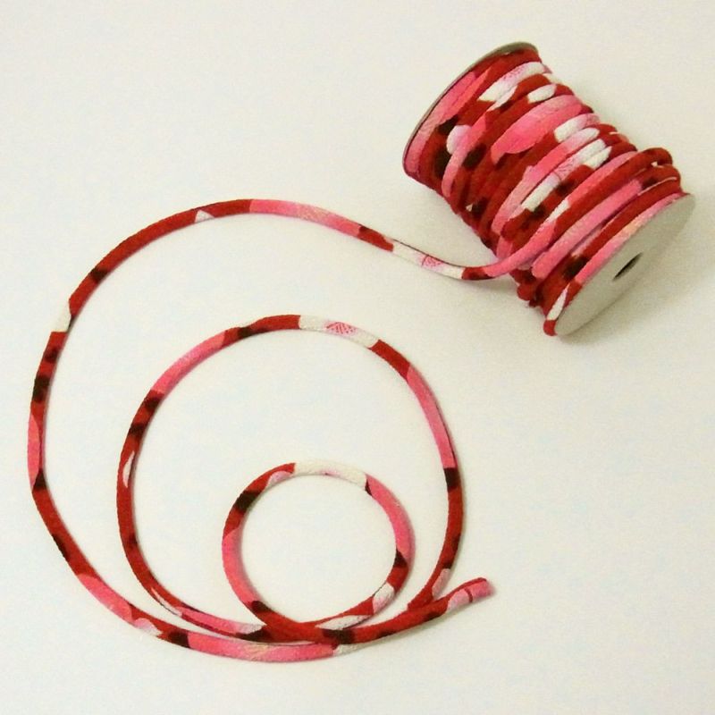 ちりめん丸ひも・モダン柄・3ミリ(実寸約4ミリ) 椿心・赤