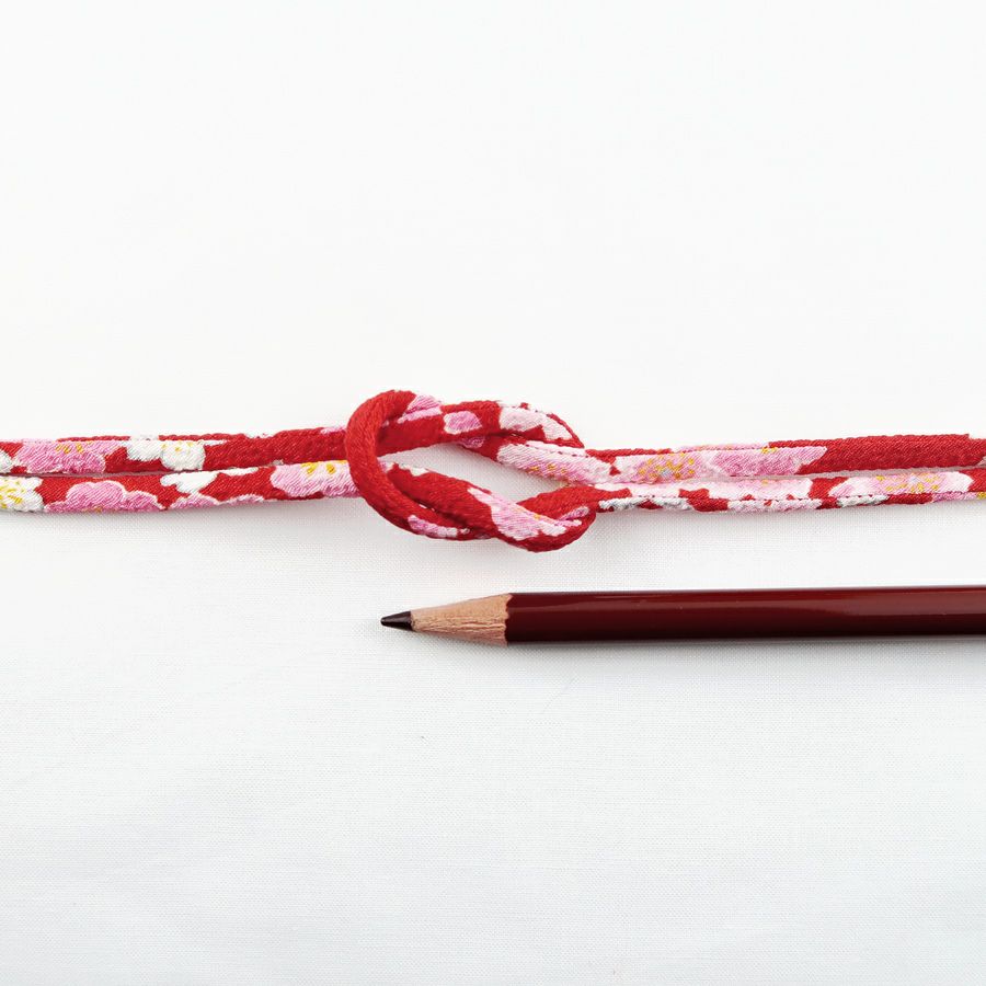ちりめん丸ひも・柄・3ミリ(実寸約4ミリ) 桜重ね・赤 10cm単位 切り売り