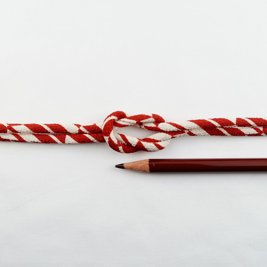生産終了/在庫限り ちりめん丸ひも・柄・3ミリ(実寸約4ミリ) 華笠・赤 10cm単位 切り売り