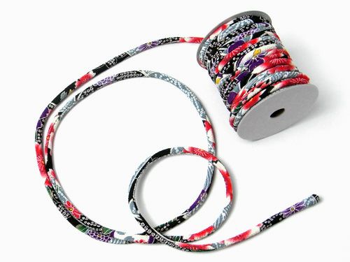 生産終了/在庫限り ちりめん丸ひも・柄・4ミリ(実寸約5-6ミリ) 小桜・黒 10cm単位 切り売り