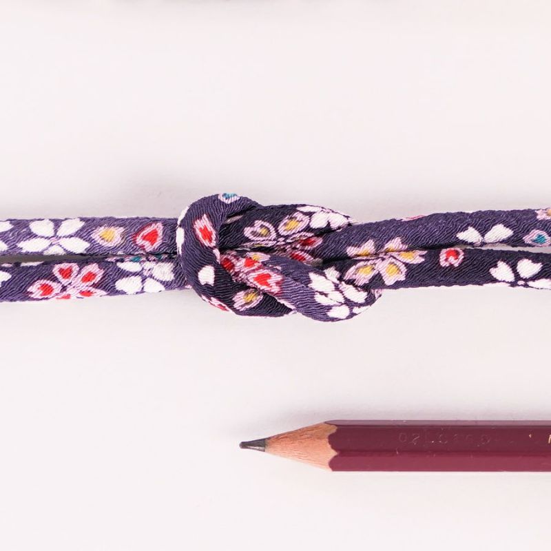 上品な菊柄の和風紐 生産終了/在庫限り ちりめん丸ひも・柄・4ミリ(実寸約5-6ミリ) まり菊・紫 10cm単位 切り売り