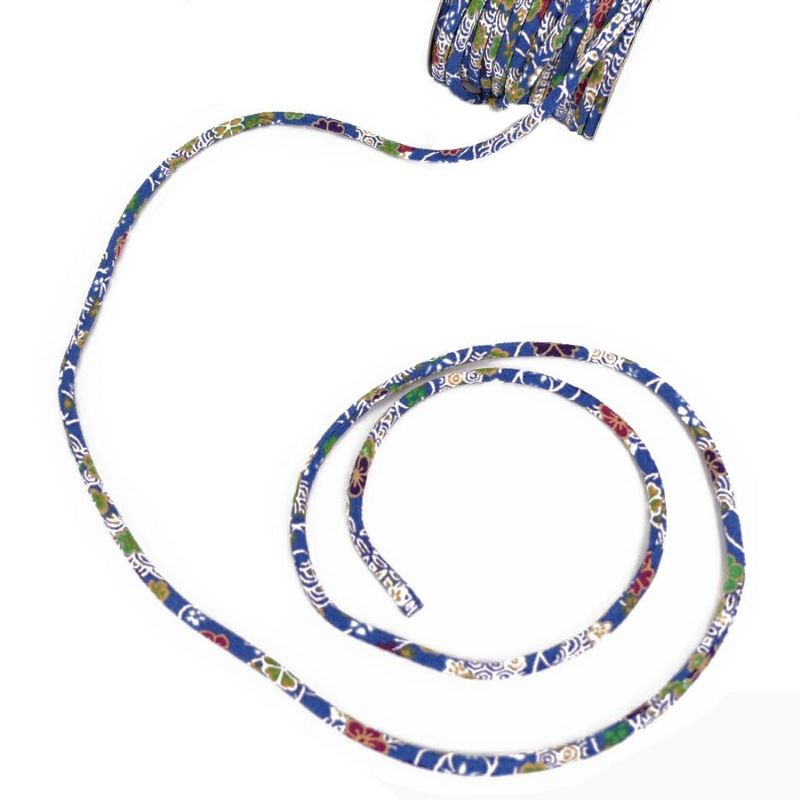 アクセサリー作りに ちりめん丸ひも・柄・4ミリ(実寸約4-6ミリ)絢爛小紋・青 10cm単位 切り売り