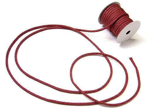 上品な小紋柄の和風ひも! 木綿の丸ひも・小紋柄・4ミリ(実寸約4-5ミリ) 渦巻き・えんじ 10cm単位 切り売り