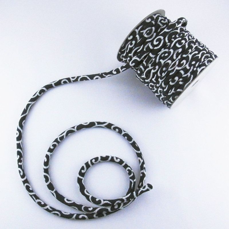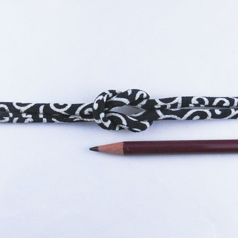 落ち着きのある上品なちりめん紐 ちりめん丸ひも・柄・4ミリ(実寸約5-6ミリ) 典雅・黒 10cm単位 切り売り