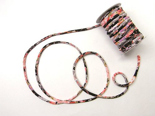 ちりめん丸ひも・柄・5ミリ(実寸約5-6ミリ) 四季花・赤 10cm単位 切り売り