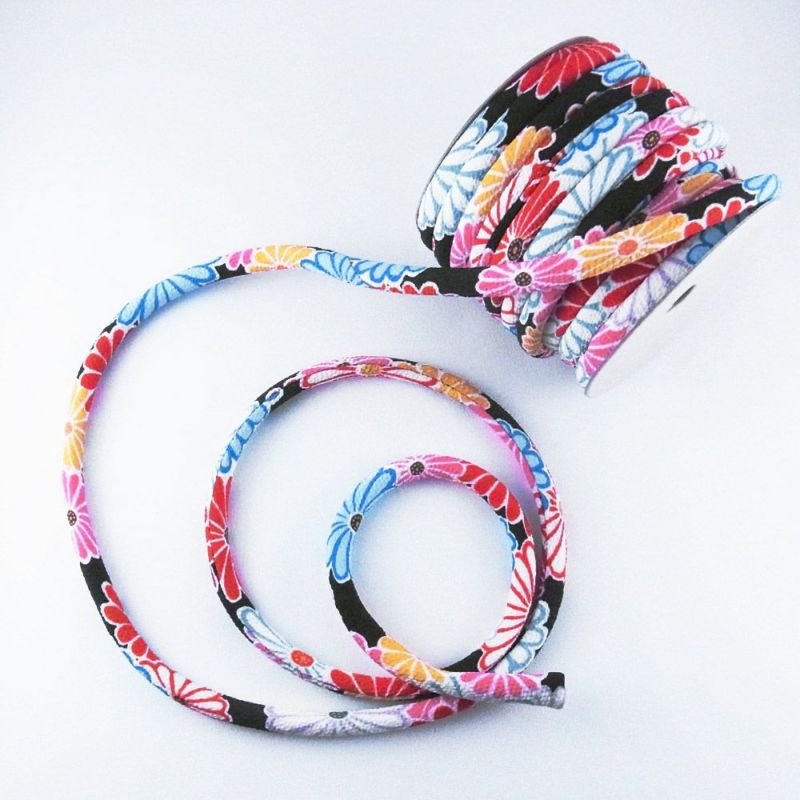 和風手芸に便利な縮緬紐 ちりめん丸ひも・柄・8ミリ(実寸約9-10ミリ) 桜はしり・朱色 10cm単位 切り売り