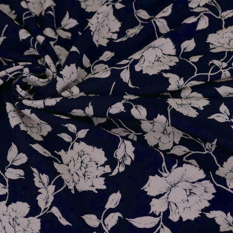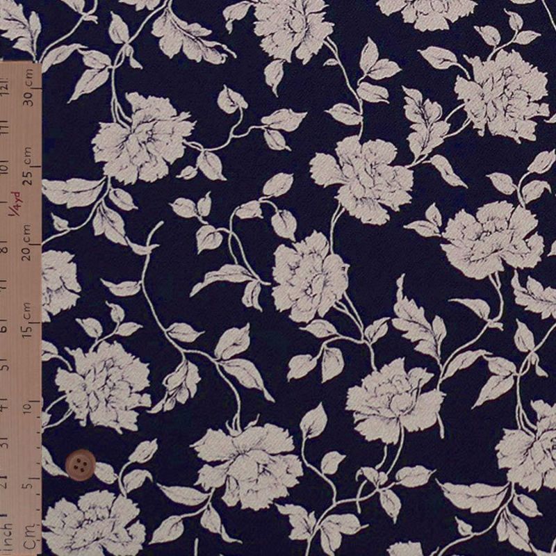 ポリエステルちりめんニット 花の調べ(濃紺/アイボリー)