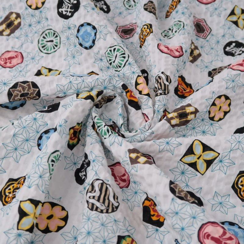 男の子の夏服に 鬼滅の刃リップル生地 (白) 甚平・浴衣に! 10cm単位 切り売り