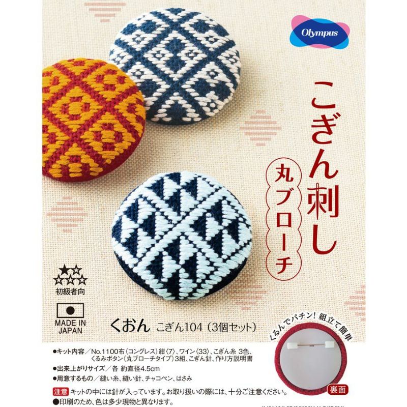 こぎんざしの簡単ブローチキット こぎん刺しキット 丸ブローチ 3個セット(しらべ)