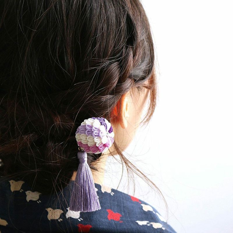 つまみ細工キット・花しごと10/紫の丸い花かんざし(丸つまみ)