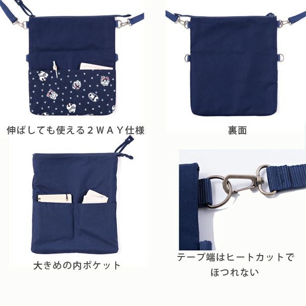 ■約 縦20cm(伸ばした時32cm)×横28cm×マチ2cm、ひも長さ 68~134cm