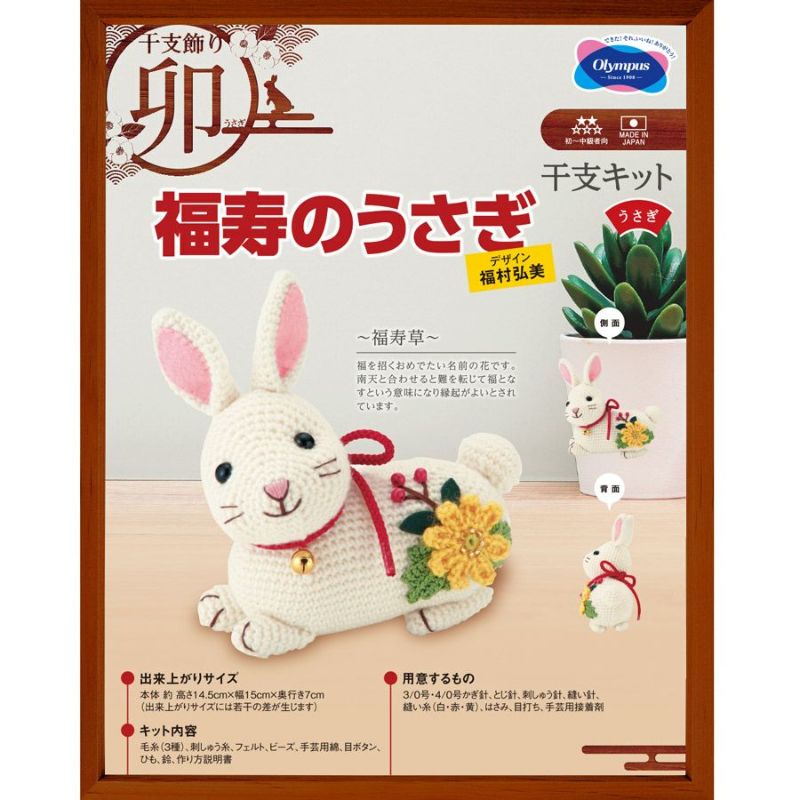 縁起の良いうさぎ年編みぐるみキット 2023卯年 干支あみぐるみ手作りキット 福寿のうさぎ