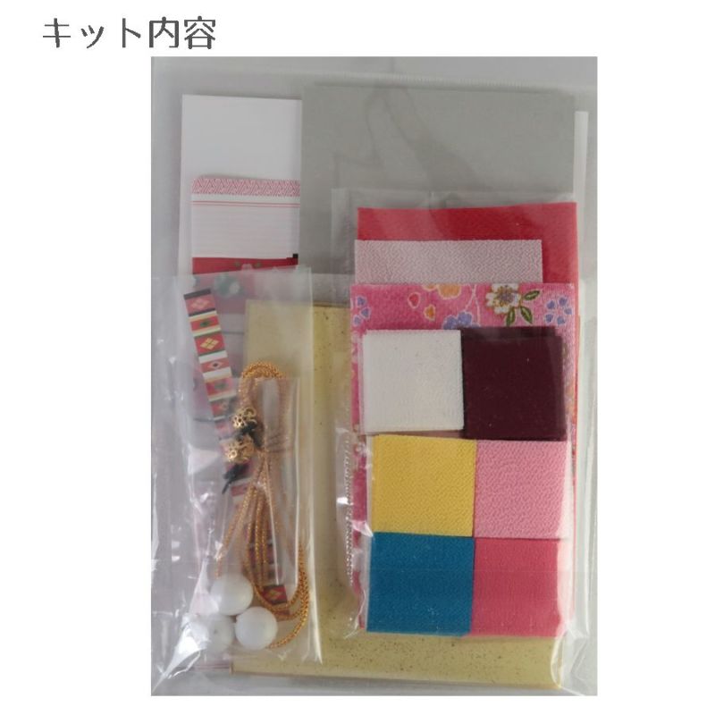 ●キット内容:ちりめん、つまみ細工用生地、金紐、スチボール、座金、刺し目、縞柄の紙、白ボール紙、スポンジシート、色紙、作り方説明書