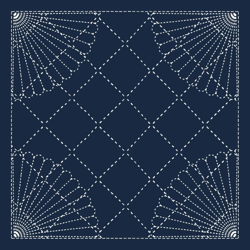 刺し子布 花ふきん (七宝/扇面) 藍色 刺子花布巾生地 紺色 七宝柄 クロフトプロダクツはなふきん