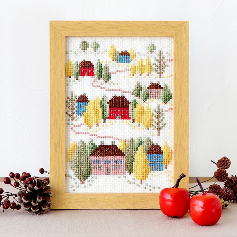 フレーム付きだからすぐ飾れる! クロスステッチキット 12ヶ月の小さな花風景(11月 秋色の散歩道)