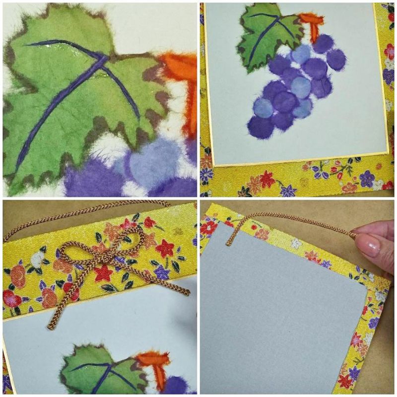 高齢者の方にも安全 和紙ちぎり絵キット・ミニ壁掛け「葡萄」