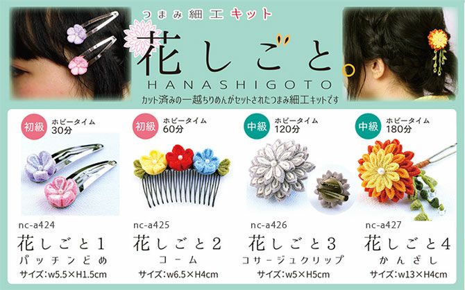 他の画像を見る 成人式や七五三に可愛い髪かざり つまみ細工キット 花しごと22/コーム(丸/二重丸/剣つまみ) 定価 ¥ 2,101 のところ 販売価格 ¥ 1,995 税込 詳細を見る お気に入りに登録する