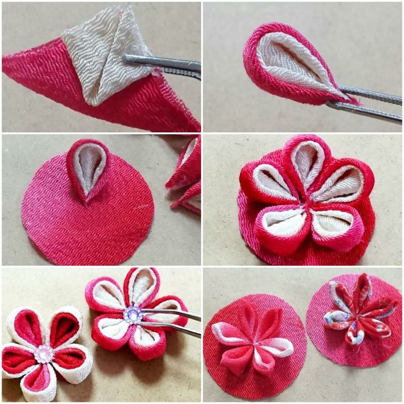シンプルで華やかなデザイン 一越ちりめん手芸キット つまみ細工 手毬菊のかんざし(赤色)