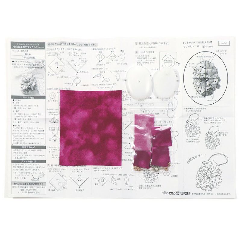 大人のキュートさを感じる つまみ細工キット クラシカルチャーム 藤と桜(ラズベリーレッド)