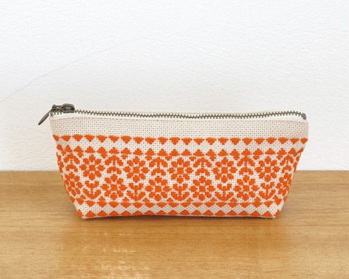 素朴な魅力のこぎん刺し。普段に活用して。 こぎんキット・ポーチ 四つ花コ(ベージュ/ピンク)