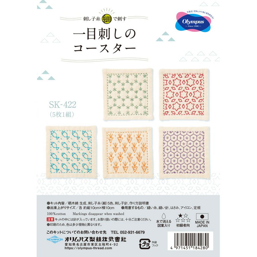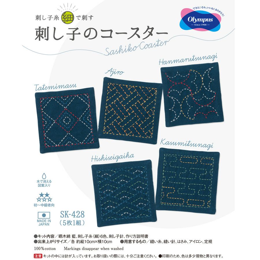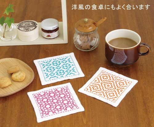 他の画像を見る ひとめざし初めてさんも安心! 刺し子キット 一目刺しのコースター(藍/5枚1組) 菊の花・柿の花ほか 定価 ¥ 2,530 のところ 販売価格 ¥ 2,277 税込 詳細を見る お気に入りに登録する