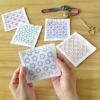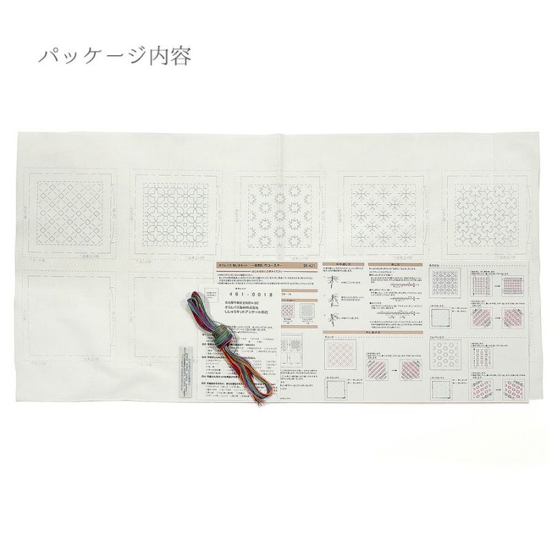 すべて違う柄のひとめざしキット 刺し子キット 一目刺しのコースター(生成り/5枚1組) 星と三つ菱・ニンジンほか