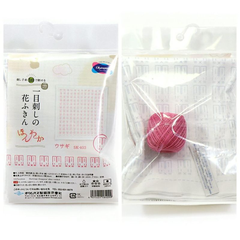 商品案内刺し子糸<細>で刺せる一目刺しの花ふきん第2弾! ウサギのかわいいモチーフのキットが登場です。