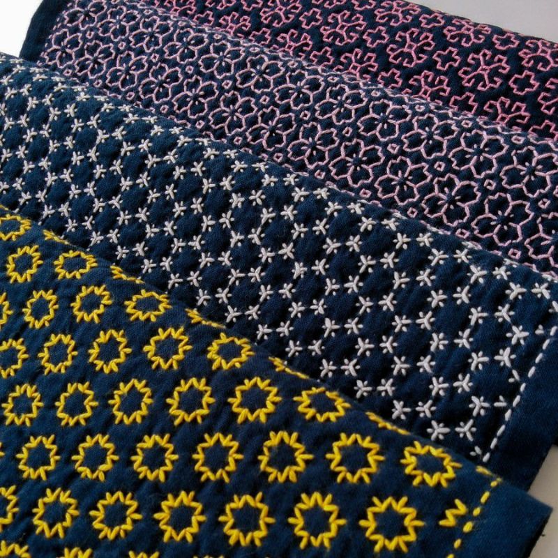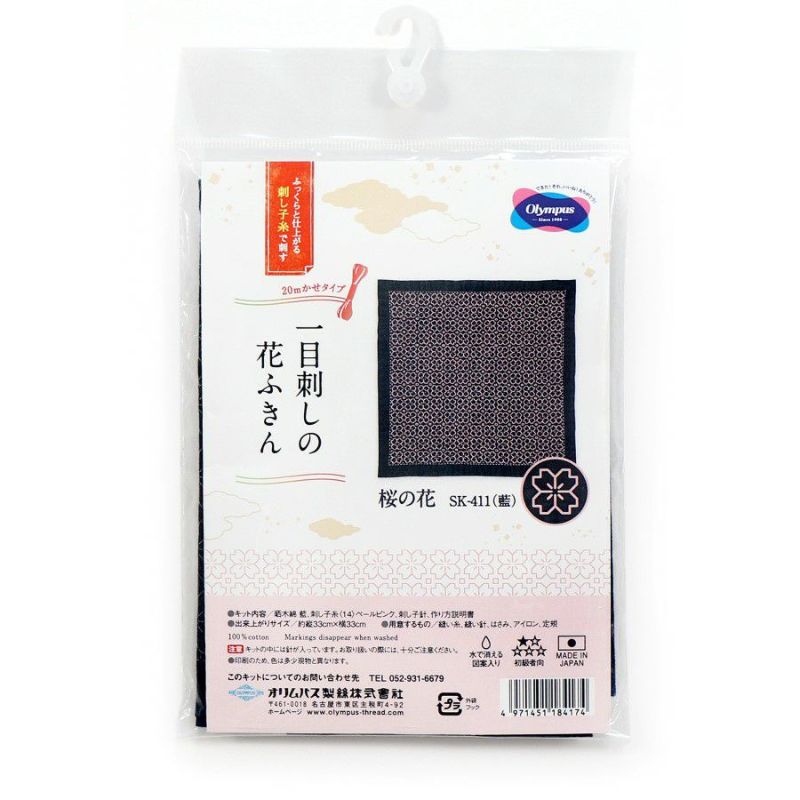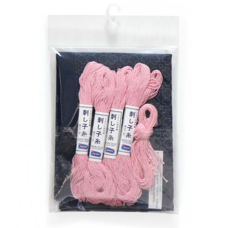 きれいな桜色、裏の模様も素敵 刺し子キット・一目刺しの花ふきん・桜の花(渋ピンク)