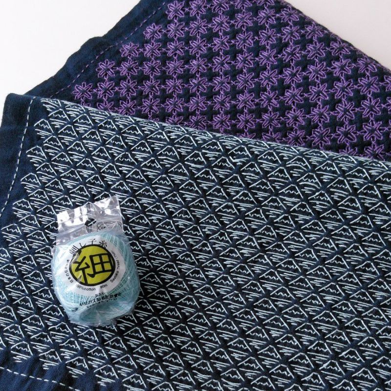細い刺し子糸で緻密な柄を 刺し子キット 一目刺しの花ふきん 富士山 fuji