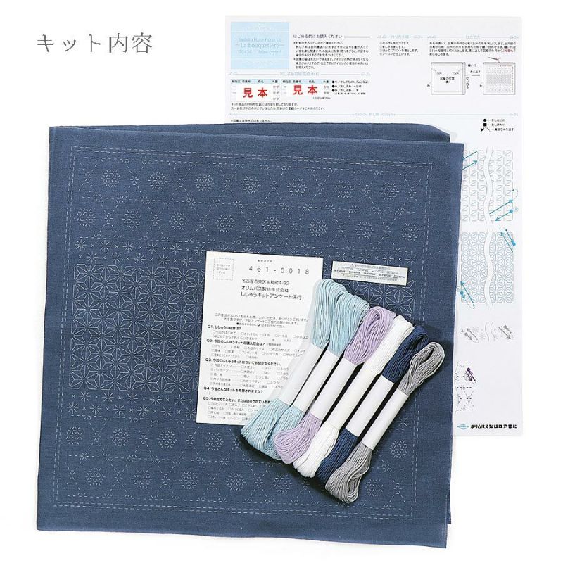 ●キット内容:刺し子もめん(綿100%):Navy Blue、刺し子糸、刺し子針、作り方説明書(英語版付)