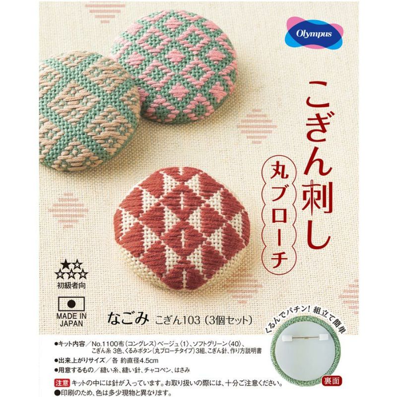 こぎんざしの簡単ブローチキット こぎん刺しキット 丸ブローチ 3個セット(しらべ)