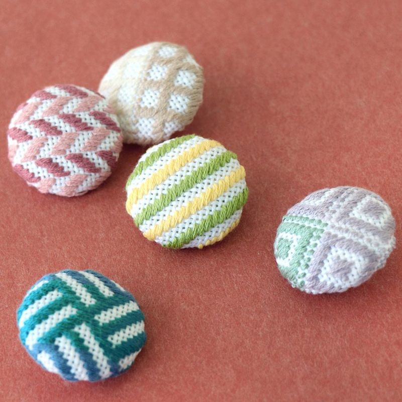 おしゃれなワンポイントに こぎん刺しキット・くるみボタン5個セット(たまゆら)